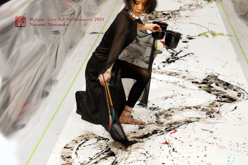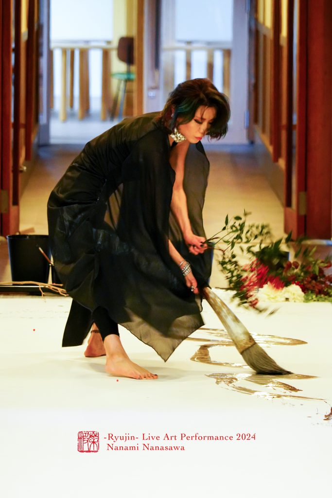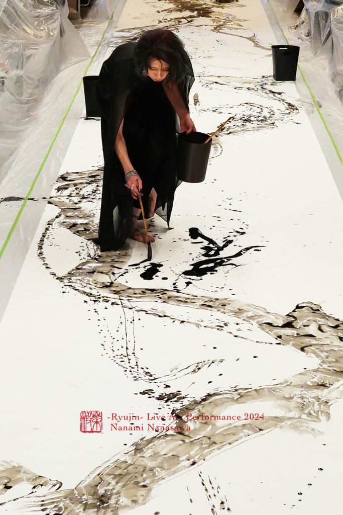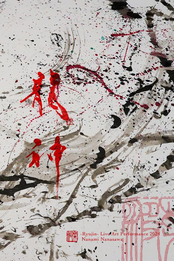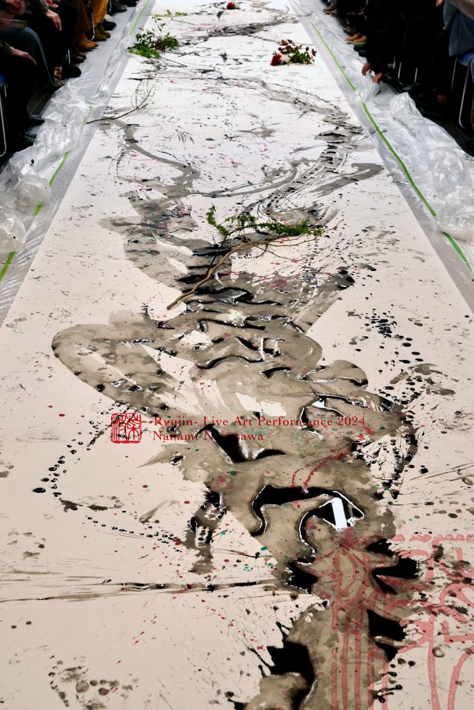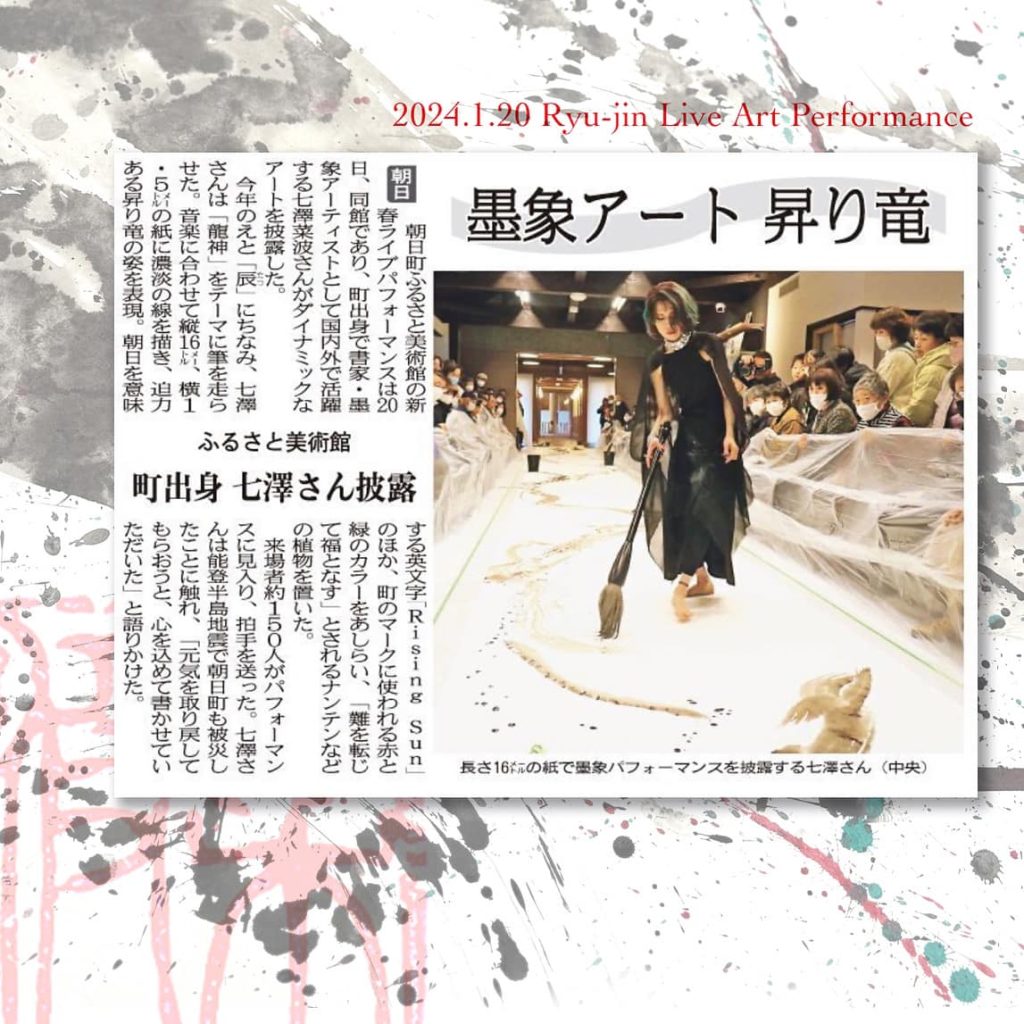 Live Performance 新春ライブパフォーマンス「龍神」 2024.01.25 新春ライブパフォーマンス「龍神」2024.1.20.sat.富山県朝日町立ふるさと美術館・ロビーエントランスにて辰年にちなんで、「龍神」をテーマに、新春ライブパフォーマンスを開催しました。エントランスいっぱいの16mの長さです!北陸を巨大な地震が襲った後でしたが、少しでも元気をお届けしたいという思いで、開催させていただきました。心ばかりですが、復興を願って、売上の一部を富山県に寄付させていただきました。パフォーマンスで描いた作品は、ふるさと美術館に展示していただきました。 Tweet Share Hatena Pocket RSS feedly Pin it この記事のタイトルとURLをコピーする 2024.1月 七澤菜波墨彩教室 前の記事 2024.2月 七澤菜波墨彩教室 次の記事