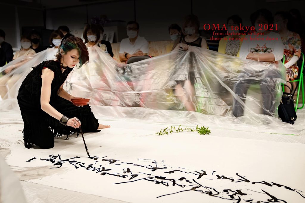 来場したみなさまへ、コロナ禍での来場に感謝の気持ちとして、逢魔のカケラ(パフォーマンスで描いた作品をポストカードサイズのフレームに入れて、みなさまにお送りしました。アクリル部分には、恭司さんと私のダブルネームサイン入り!)と、オリジナルラベルワインをプレゼントさせていただきました。